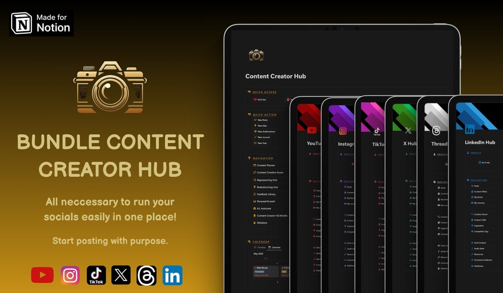 Grab the Creator Hub Bundle now and finally get the structure you need to grow across every platform - without losing your mind.