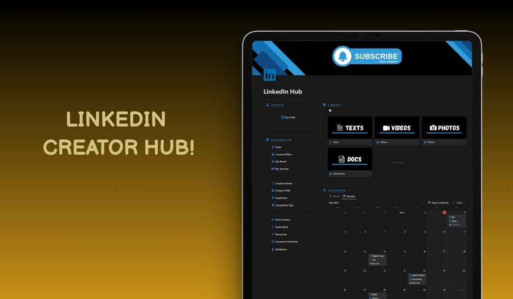Every single hub is designed to sync seamlessly with the master Content Creator Hub — so you can manage everything from one place without switching dashboards 10 times a day.