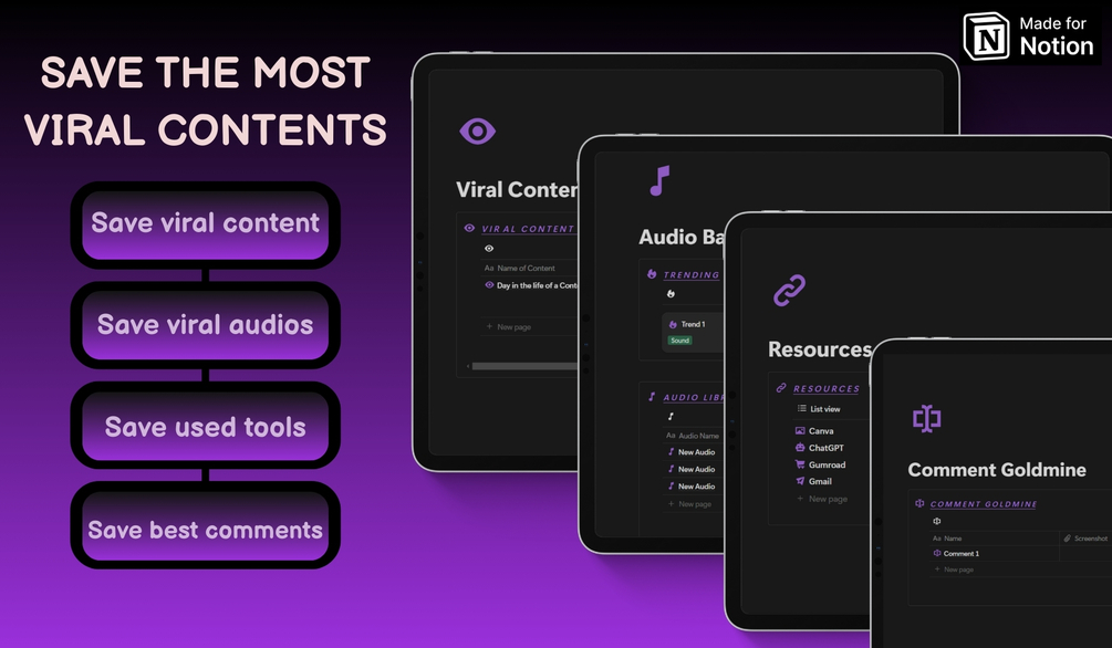 A complete Notion dashboard to grow your brand, organize your content, and finally stay consistent.